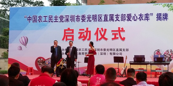 2019年4月1日下午,农工党深圳市委会光明区直属支部正在光明大第幼儿园附近地下停车场入口广场培正教育机构中心左侧举行“爱心衣库”更换地址揭牌活动。同时,现场发送了300箱爱心物资到青海海东市循化县,为贫困山区献爱心。农工党深圳市委会常巨平主委,光明区统战部部长覃敬腾,直属支部主委胡任重参加了揭牌仪式。