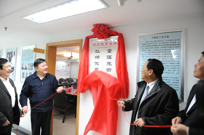 图为:陈竺、刘晓峰为农工党福建省委会机关党史长廊展揭幕