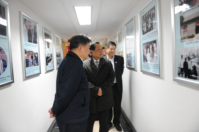 图为:陈竺、刘晓峰参观农工党福建省委会机关党史长廊展