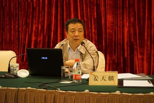 图为:农工党中央研究室主任姜天麟做做辅导报告