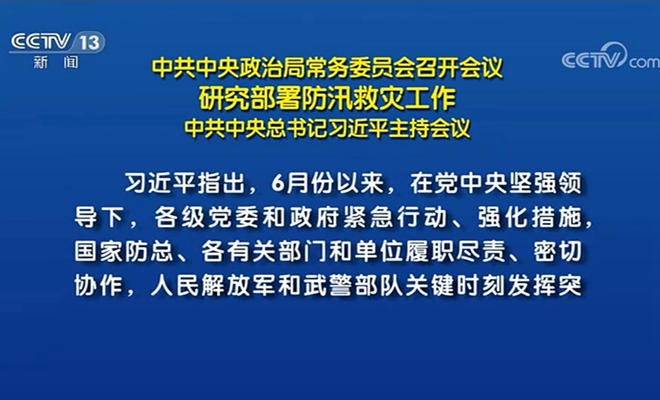 习近平主持召开中共中央政治局常务委员会会议 研究部署防汛救灾工作