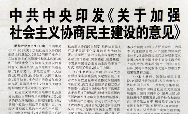 中共中央印发《关于加强社会主义协商民主建设的意见》