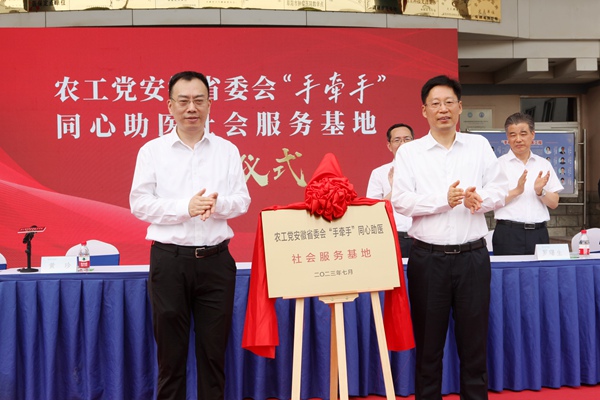 2023年7月12日,农工党安徽省委会“手牵手”同心助医社会服务基地揭牌仪式在阜阳市肿瘤医院举行。农工党中央副主席徐涛、农工党安徽省委会主委杨金龙,中共阜阳市委副书记、市人民政府市长刘玉杰,中共安徽省委统战部副部长罗曙生出席活动。农工党安徽省委会专职副主委黄珍出席并主持揭牌仪式,中科大一附院(安徽省立医院)党委书记刘连新,中共阜阳市委常委、统战部部长张俊杰等出席仪式。农工党安徽省委会副主委、中科大一附院(安徽省立医院)副院长方诗元,农工党安徽省委会副主委、安徽医科大学护理学院院长洪静芳等参加活动。