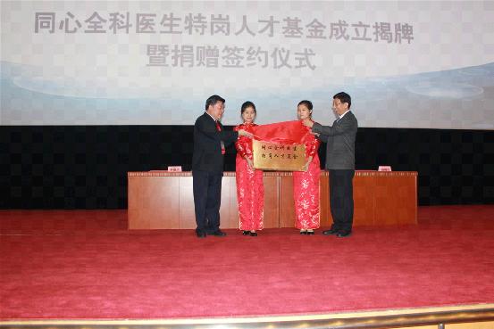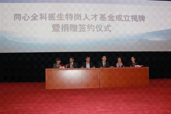 2014年10月11日上午,“同心全科医生特岗人才基金”成立揭牌暨捐赠签约仪式在北京会议中心隆重举行。全国人大常委会副委员长、农工党中央主席陈竺,农工党中央原副主席、中国初级卫生保健基金会理事长汪纪戎,北京协和医学院院长、中国科学院院士曾益新,农工党中央社会服务部部长刘峻杰等出席仪式。陈竺和曾益新共同为“同心全科医生特岗人才基金”揭牌。