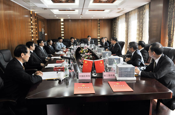他指出,当前,我国已进入全面建成小康社会的决定性阶段,支撑发展的要素条件正发生深刻变化,深层次矛盾逐渐凸显,正处于社会转型期、改革攻坚期、矛盾凸显期和问题多发期,同时也是可以大有作为的重要战略机遇期。值此发展的关键节点,迫切需要一大批懂专业、懂管理,具有较强战略眼光的复合型人才参与全面深化改革的进程,不断提高运用中国特色社会主义制度有效治理国家的能力,推进国家治理体系和治理能力现代化;同时,也需要加强对相关学科的建设,并密切科研成果与政策制定之间的关系,让研究成果真正造福于社会和人民。中国社会科学院承担着国家有关部门提出或委托的国家经济社会发展中具有全局意义的重大问题和实际问题的研究任务。随着政府和公众对健康、环境问题的日益关注,社科院需要加强对医药卫生、环境保护等问题的研究,为相关政策的制定提供依据。农工党作为以医药卫生、人口资源和生态环境领域高中级知识分子为主体的参政党,在上述领域具有高层次人才汇集的优势,但许多党员缺乏与管理相关的系统知识和能力,尚不能有效地把专业知识转化为可行的政策建议,制约了作用的充分发挥。因此,双方在人才培养和学科建设方面进行深层次合作,可谓意义重大,能够实现资源共享、优势互补,促进新型管理学体系的创新与建设,为推进新型社会管理体系提供人才支撑。