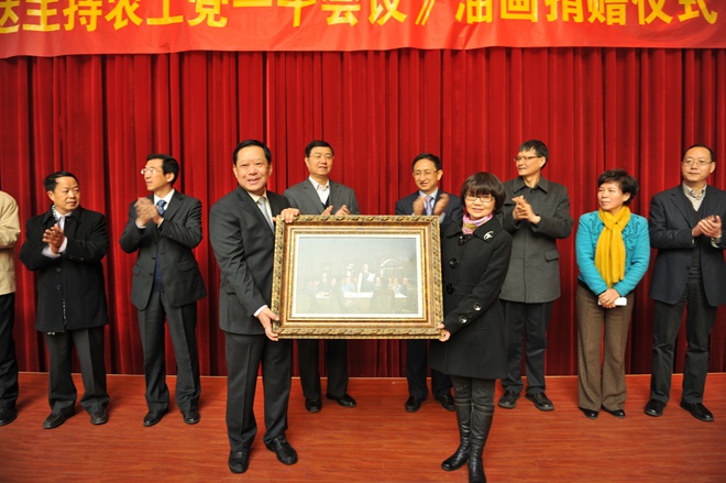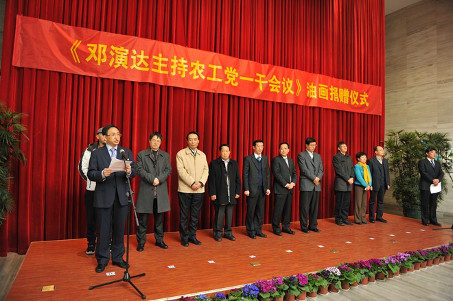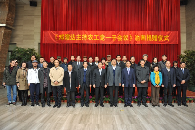 2014年12月2日上午,《邓演达主持农工党一干会议》大型油画捐赠暨揭幕仪式在南京雨花台烈士纪念馆举行。全国政协副主席、农工党中央常务副主席刘晓峰,农工党中央副主席杨震、龚建明,江苏省政协副主席、中共江苏省委统战部部长罗一民,农工党中央宣传部部长石光树、农工党中央宣传部副部长杨晓波、农工党中央研究室副主任石光、南京市政协副主席王建华、雨花台烈士陵园管理局局长徐雪琴、农工党浙江省委会专职副主委陆国钦、中国美术学院党委副书记胡钟华,中国美术学院油画系副教授、油画作者常青,农工党江苏省委会副主委黄煌、肖渡、曹锡荣、王水、郑丽敏,中共江苏省委统战部副巡视员黄仕亮,农工党重庆市委会副巡视员胡小元,中国美术学院统战部部长傅巧玲,以及省市其他有关单位领导、省市新闻单位的同志和农工党省直工委、南京市委会各基层组织的代表等百余人出席仪式。江苏省政协副主席、农工党江苏省委会主委周健民主持仪式。