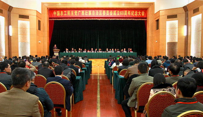 2014年12月7日上午,中国农工民主党广西壮族自治区委员会成立60周年纪念大会在南宁隆重举行。全国人大常委会副委员长、农工党中央主席陈竺出席大会并讲话。