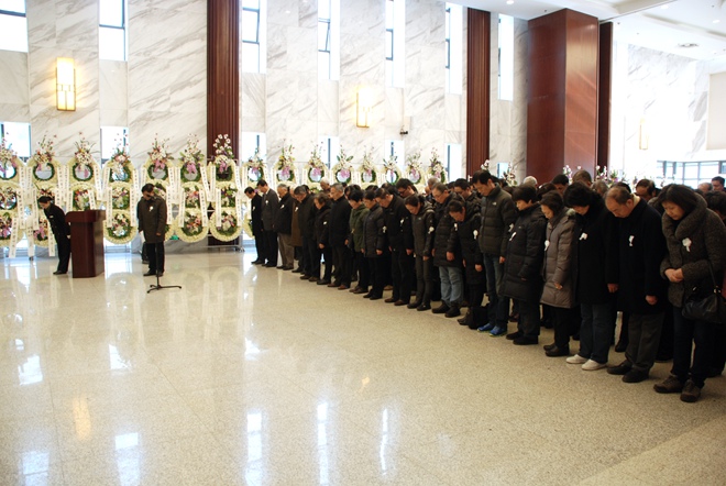 29日上午的西天寺殡仪馆礼堂庄严肃穆。告别厅门口一付“履职尽责光明磊落留英名,勤勉认真鞠躬尽瘁励后人”的巨幅挽联勾勒出管老为多党合作事业不懈奋斗的精神风貌。管仲伟同志的遗体安卧在鲜花翠柏丛中。上午9时,农工党中央、中共江苏省委统战部、农工党江苏省委领导以及部分老同志在哀乐声中缓步来到管仲伟同志遗体前肃立默哀,向管仲伟同志遗体三鞠躬,作最后送别,并与亲属一一握手,表示慰问。