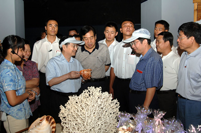 蒋正华在考察中指出,在经济全球化、区域化的大背景下,海洋经济在世界经济发展中具有战略性的重要意义。在海洋资源的开发利用中,我们应遵循科学开发、综合开发、开放开发的原则,根据各区域的特点和海洋功能区划来制定海洋经济战略规划。要特别注意水产品、海洋油气资源的可持续利用及环境保护问题,早日把海南建设成我国南海一颗环境美好、资源丰富、经济强盛的璀璨明珠。
