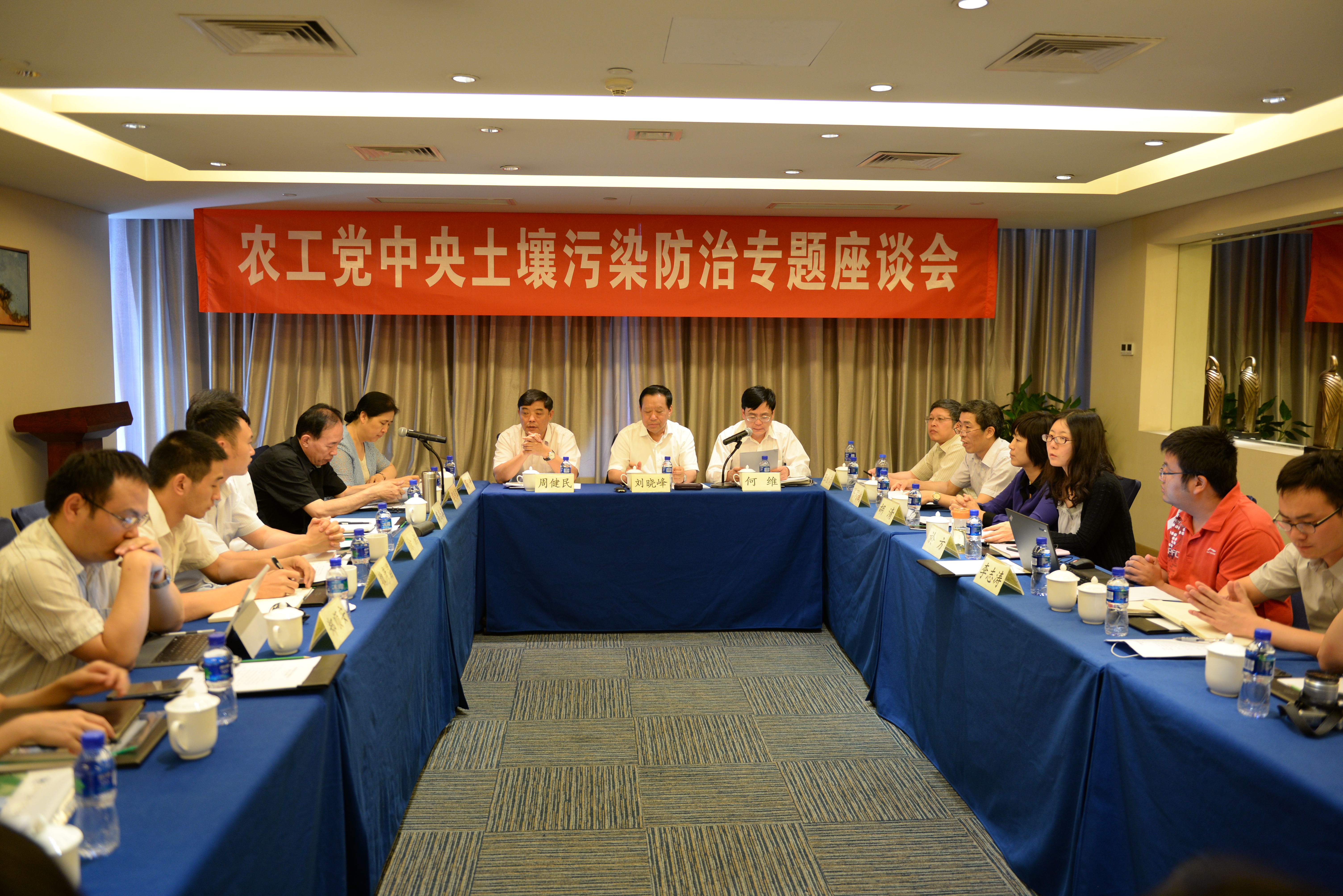 农工党江苏省委会主委、中科院南京分院院长周健民、农工党中央生态环境工作委员会主任、环保部环境规划院副院长兼总工程师王金南出席开幕式。周健民、包景岭、郑丙辉、王东、王夏晖、胡清等来自科研单位和高校的十多位专家学者围绕“国家水安全的战略支撑”和“国家土壤污染防治与资源合理利用”作了专题报告。