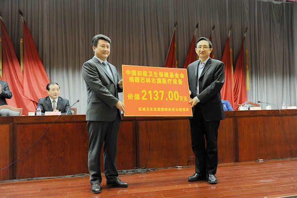 2015年10月12日上午,中国初级卫生保健基金会向四川省德阳市和内蒙古自治区赤峰市巴林右旗,捐赠医疗设备仪式,在中国农工民主党中央机关办公楼举行。全国政协副主席、农工党中央常务副主席刘晓峰,全国人大环资委副主任、农工党中央专职副主席、中国初级卫生保健基金会理事长龚建明出席仪式。