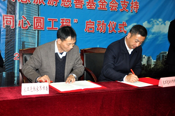 2015年11月23日下午,农工党深圳市委会与农工党张家界市委会共建友好市委签约暨深圳市大慈旅游慈善基金会支持湖南“同心圆工程”启动仪式在农工党湖南省委会机关举行。全国人大环资委副主任、农工党中央专职副主席、农工党湖南省委会主委龚建明和中共湖南省委统战部巡视员刘权出席并讲话。