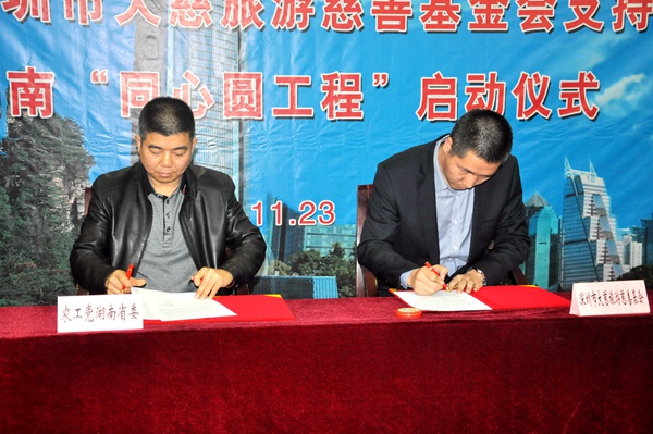 为了进一步加大实施湖南“同心圆工程”的力度,深圳市大慈旅游慈善基金会与农工党湖南省委友好协商,达成合作意向,双方签署了支持湖南“同心圆工程”备忘录。深圳市大慈旅游慈善基金会将通过农工党湖南省委会向张家界或其他市(州)提供“同心圆工程”项目的支持,首批项目决定在张家界市桑植县捐建一批村卫生室。今后,深圳市大慈旅游慈善基金会将根据湖南“同心圆工程”项目的实施情况,与农工党湖南省委会再行商议在湖南更多的地方、更多的项目上给予支持。