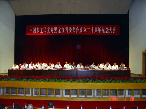 7月28日上午,中国农工民主党黑龙江省委成立20周年纪念大会在哈尔滨和平邨宾馆隆重召开。全国政协副主席、农工党中央常务副主席陈宗兴到会祝贺并致辞。中共黑龙江省委常委、组织部长龙新南代表中共黑龙江省委、省政府到会祝贺并致贺辞。黑龙江省政协副主席、民革黑龙江省委主委何小平代表黑龙江省民革、民盟、民建、民进、九三学社、工商联宣读贺词。农工党中央副主席、农工党黑龙江省委主委陈述涛发言。黑龙江省领导程幼东、王利民、陶夏新,农工党黑龙江省原主委王廼谦等出席会议。农工党省委会副主委刘长青、纪效民、马立群、郭春景、宋立权、林志国、高翔,省政府参事、省委会原副主委钟震宇出席会议,大会由刘长青主持,来自全省的农工党员代表及受表彰的优秀集体和优秀个人代表300余人参加会议。
