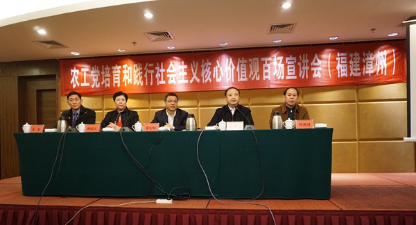 2016年1月29日,农工党中央举办的“农工党培育和践行社会主义核心价值观百场宣讲”在福建省漳州市举行首场试点宣讲。全国政协委员、农工党中央常委、中央研究室主任游宏炳作了题为《农工党党史——历史的选择》的讲座;农工党广东省委会常委、中山大学基层委员会主委秦鉴作了题为《如何做一名合格的农工党员》的讲座。漳州市政协副主席、农工党漳州市委会主委杨银玉出席宣讲活动并致辞。宣讲会由农工党中央宣传部副巡视员刘保明主持。