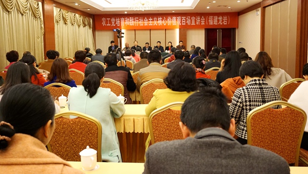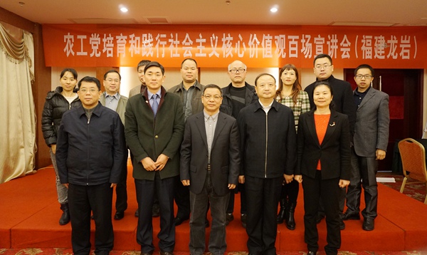 2016年1月30日,农工党中央举办的“农工党培育和践行社会主义核心价值观百场宣讲”在著名革命老区福建省龙岩市举行第二场试点宣讲,大力推动学习习近平总书记系列重要讲话精神,培育和践行社会主义核心价值观,深入开展坚持和发展中国特色社会主义学习实践活动。