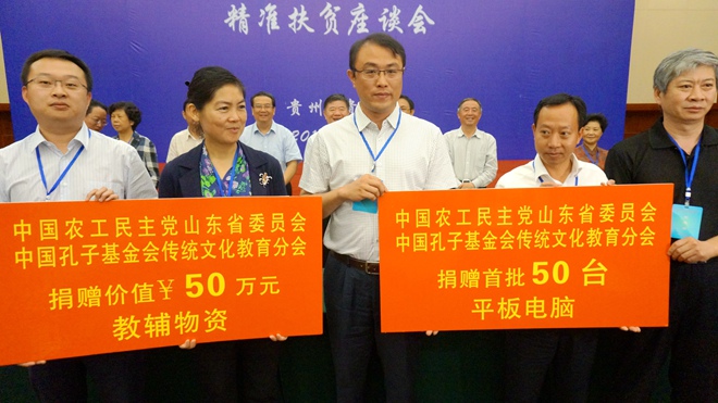 会后还举行了有关合作协议的签订仪式以及捐赠、授牌活动。中国孔子基金会传统文化教育分会与贵州省教育厅、农工党山东省委会、农工党贵州省委会签订了“同心助学工程”项目合作协议,向贵州省捐赠了价值2700万元的教辅设备。中国初级卫生保健基金会与毕节市卫生和计划生育委员会签订捐赠协议,捐赠了价值8000万元的全球影像“云医疗”系统。农工党山东省委会、中国孔子基金会传统文化教育分会与大方县人民政府签订了“同心助学工程”捐赠协议,捐赠了价值50万元的教辅设备和首批50台学习用平板电脑。南京瑞年百斯特有限公司于大方县人民政府签订了总投资额5亿元的保健品、中药材生产加工、医疗器械等项目战略合作意向书。