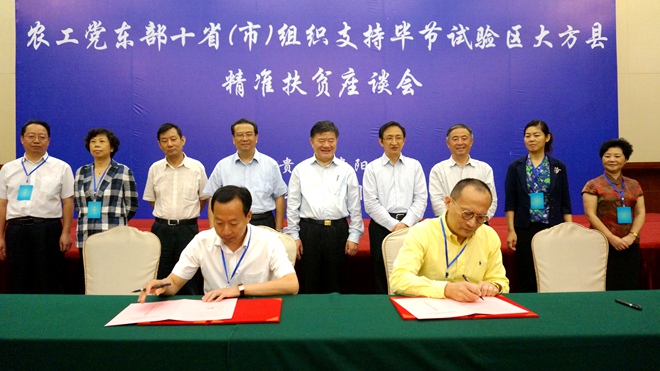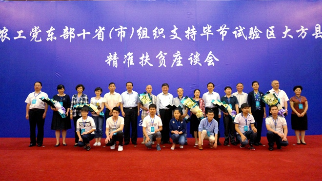 2016年6月15日上午,农工党东部十省(市)组织支持毕节试验区大方县精准扶贫座谈会在贵州省贵阳市召开。全国人大常委会副委员长、农工党中央主席陈竺出席并讲话,中共贵州省委常委、统战部部长刘晓凯致辞。座谈会由农工党中央副主席龚建明主持。