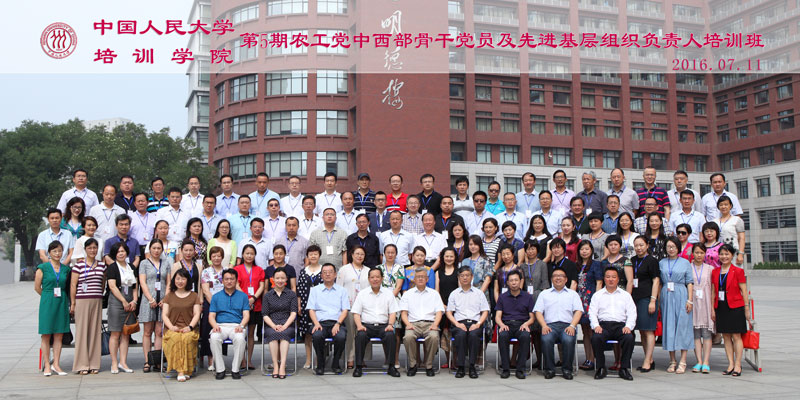 2016年7月10日至16日,第5期农工党中西部骨干党员及先进基层组织负责人培训班在中国人民大学举办。全国政协副主席、农工党中央常务副主席刘晓峰出席开班式并讲话,中共中国人民大学党委常务副书记张建明出席开班式并致辞。农工党中央秘书长兼组织部部长曲凤宏、组织部副部长邓蓉玲、中共中国人民大学党委统战部部长兼宣传部负责人齐鹏飞出席开班式。中国人民大学培训学院院长郭杰主持开班式。