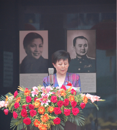 图为翔仪堂落成剪彩仪式上黄琪翔亲属代表发言