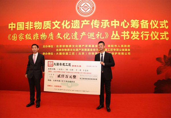 权健集团向大国非遗工匠专项公益基金捐款2000万元