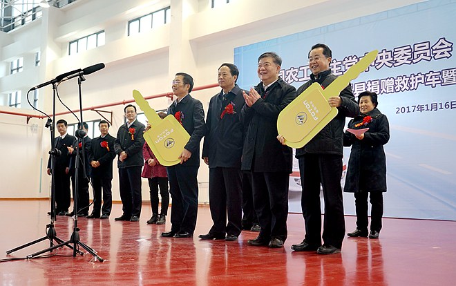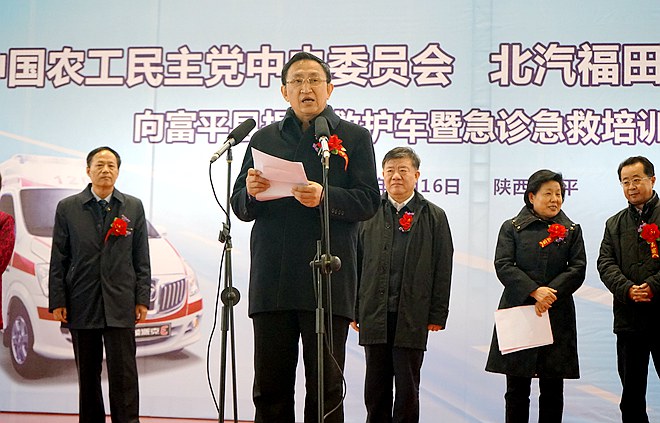 2017年1月16日下午,农工党中央与北汽福田汽车股份有限公司在陕西省富平县举行了“向富平县捐赠救护车暨急诊急救培训班开班仪式”。全国人大常委会副委员长、农工党中央主席陈竺出席捐赠仪式,仪式由陕西省人大常委会副主任、农工党中央副主席朱静芝主持,全国人大常委、农工党中央副主席龚建明出席并讲话。
