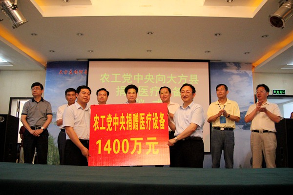 2013年6月15日,农工党中央向大方县捐赠价值1400万元的医疗设备,农工党中央常务副主席刘晓峰、副主席龚建明出席在火电厂举行的捐赠仪式。