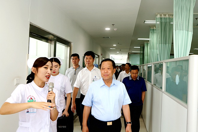 盛夏七月,骄阳似火。一到济南,当日下午刘晓峰一行,前往济南市章丘中医院、明水街道办事处社区卫生服务中心等地实地调研。查看了章丘中医院中西药房、名老中医工作室、百草园等中医特色科室;到章丘区明水社区卫生服务中心,查看了透析大厅、中医康复大厅、中医堂,分别听取了中医药工作汇报,对章丘区的中医药工作给予了充分肯定和高度评价。近年来,章丘区中医药工作主动适应医改新常态,不断解放思想、勇于创新,紧紧围绕“全面振兴中医药事业、提升人民群众健康水平”目标,牢牢把握“夯基础、出成效、亮特色、惠民生”主线,突出抓好健全中医药服务网络和提升中医药服务能力两项重点,中医药服务体系建设得到新提升。