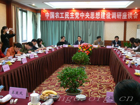 中共中央总书记胡锦涛在今年1月22日党外人士迎春座谈会上讲到,“在政治上形成广泛共识,是各民主党派、无党派人士同中国共产党亲密合作的基础。希望同志们把思想建设作为政治交接和自身建设的核心。”为了贯彻胡锦涛总书记的讲话精神,加强农工党思想建设,4月15日至23日,由农工党中央、中央统战部、农工党北京市委会联合组成的思想建设调研组赴赣、浙、沪进行思想建设调研。