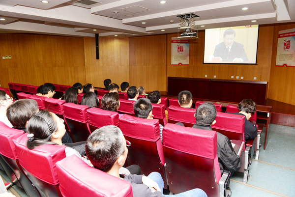 农工党中央机关干部和农工党中央直属事业单位、农工党中央书画院有关同志共40余人一同收看了大会直播。(文字/摄影 陈静)