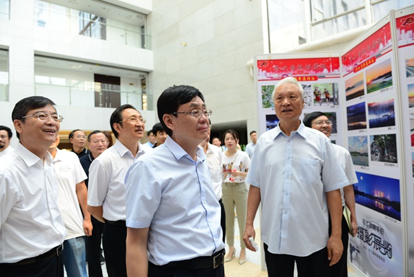 开幕式上,何维、陈宗兴、杨震、龚建明、曲凤宏共同启动摄影展开幕。
