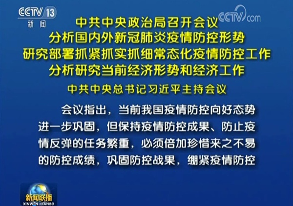 会议指出,当前我国疫情防控向好态势进一步巩固,但保持疫情防控成果、防止疫情反弹的任务繁重,必须倍加珍惜来之不易的防控成绩,巩固防控战果,绷紧疫情防控这根弦,抓紧抓实抓细常态化疫情防控,因时因势完善外防输入、内防反弹各项措施并切实抓好落实,积极引导人民群众做好必要防护,不断巩固疫情持续向好形势,为人民群众生命安全和身体健康、经济社会秩序全面恢复提供有力保障。