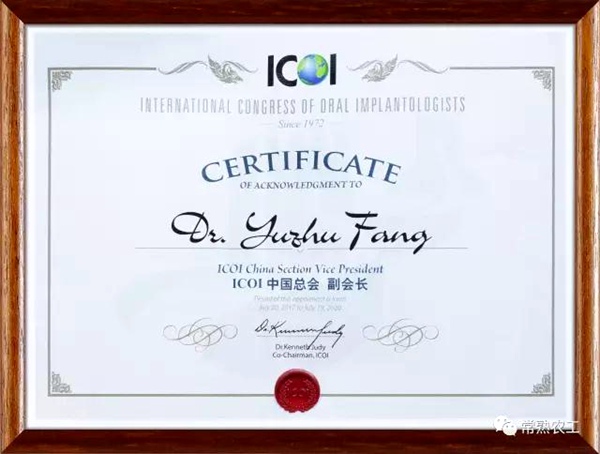2017年7月,ICOI国际种植牙医师协会中国总会成立大会在深圳隆重举行,在此次大会上,常熟农工党党员、玉蕙口腔医院连锁方玉柱院长光荣当选ICOI国际种植牙医师协会中国总会副会长。此次当选,既是众望所归,更是玉蕙种植团队的实力体现,让世界为中国口腔种植医生竖起大拇。