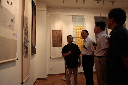 出席开幕式的嘉宾有:国家行政学院原党委书记、常务副院长陈福今,山西、湖南原省委书记、中国生产力学会会长王茂林,全国政协文史委副主任、民航总局原局长李家祥,国家行政学院原副院长周文彰,国务院国资委原监事会主席、中国生产力学会原常务副会长翟立功,中国人民革命军事博物馆原馆长、少将、中国诗书画研究会会长陈士富,曹育民将军,孔繁顺将军,王振荣将军,刘克仁将军,刘长胜将军,国家行政学院书画研究院原院长、顾问廖自力,中国农工民主党宣传部原部长石光树,中央统战部局长助理冯红云,文化部事务管理局局长都海江,文化部博物馆司司长张建新,故宫博物院原副院长陈丽华。因工作原因不能亲至现场参加开幕式但送来题词的有:全国人大原副委员长、农工民主党中央原主席蒋正华,全国政协原副主席、农工民主党中央原常务副主席陈宗兴。发来贺电的有:全国人大常委会委员、农工党中央副主席龚建明,文化部原副部长、故宫博物院原院长、中华诗词学会会长郑欣淼,中国国家画院院长、中国美术家协会副主席杨晓阳。