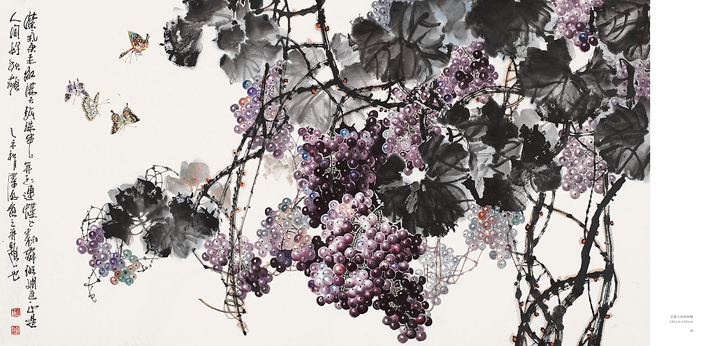 国画《不鲜不要钱》是画家李泽存成名之作,早在20世纪80年代,此作品在《全国教育工作者书画大展)上获金奖,高180cm,宽90cm,是当今葡萄作品中有深远意义的佳作。