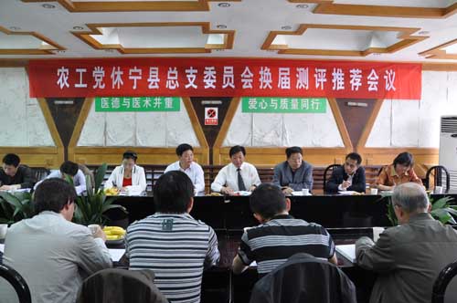 4月27日,农工党休宁县总支召开全体党员大会,进行述职测评活动。会上由中共休宁县委统战部、组织部联合组成的考察组,对农工党休宁总支委员会领导班子和班子成员进行考察评议,并对新一届的总支主委、副主委和总支委员的人选进行了民主推荐。
