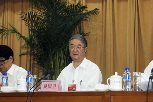 桑国卫首先通报了十四届十四次中央常委会议以来中央开展的主要工作:基本完成了各省级组织的换届工作,参政议政工作取得新成果,继续参与毕节试验区建设,组织举办第五届“中国环境与健康宣传周”活动,继续深入开展学习践行社会主义核心价值体系活动等。桑国卫对新一届省级组织领导班子提出几点希望,一是要扎实搞好领导班子建设,二是加强代表人士队伍建设,三是加强参政议政能力建设。