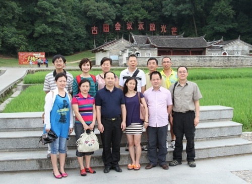 全体人员认真参观了位于福建龙岩上杭县的古田会议旧址。1929年12月,中国工农红军第四军在此召开了第九次党代表大会。大会总结了南昌起义以来建军建党的经验,通过了毛泽东同志起草的《关于纠正党内的错误思想》,这是中国共产党历史上的一次重要会议。在古田会议旧址,墙壁上的红军标语清晰可见,地板上当年代表们开会时因为天气寒冷烤火取暖留下的斑斑痕迹历历在目。在福州拜会了农工党福建省委会,与福建省委会赖副主委及机关干部进行了愉快的交流。此次福建之行,大家还对当地的经济建设和社会管理进行了考察。