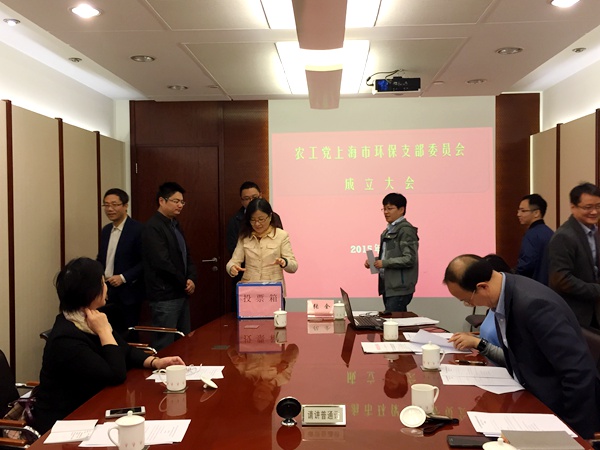 2015年11月3日上午,中国农工民主党上海市环保支部委员会成立大会在市政大厦召开,标志着农工党原环保局小组正式升格成为环保支部委员会。农工党上海市委会专职副主委金如颖,上海市环保局局长、农工党上海市委会副主委张全,农工党上海市委会秘书长王晓东,中共上海市环保局党委书记马建勋出席了成立大会。