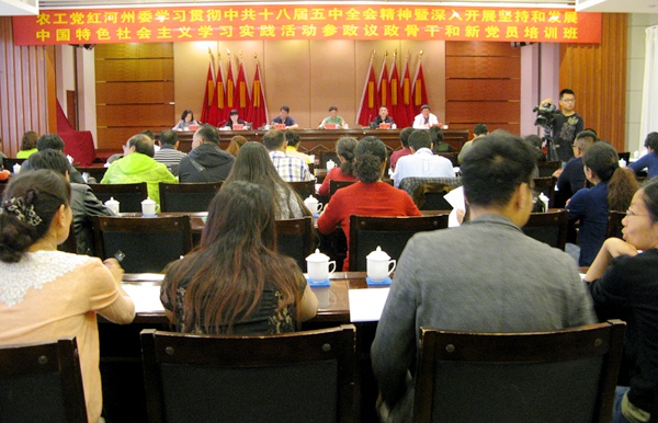 州委会副主委纳猛、向爱武出席培训,全州党员中的人大代表和政协委员,红河州各级农工党组织委员,近5年入党的新党员,州市机关专职干部120人参加培训。(苏俊)