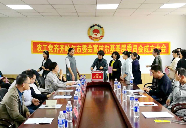 市委会宣传部负责人宣读了市委会的批复,通过了选举办法和监票人名单。与会党员按照严格规范的选举程序,选举产生了由9人组成的第一届农工党齐齐哈尔市富拉尔基区基层委员会。刘志学当选为主任委员,徐亚茹、张乐丹、聂卫国当选为副主任委员,王立宾、潘梦霞、杨红军、张艳辉、王英鸽当选为委员。刘志学代表基层委员会发言。