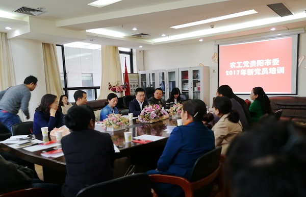 2017年10月20日上午,农工党贵阳市委会在市委会机关会议室组织2017年新党员培训,市委会主委田社鸿参加培训活动并讲话。