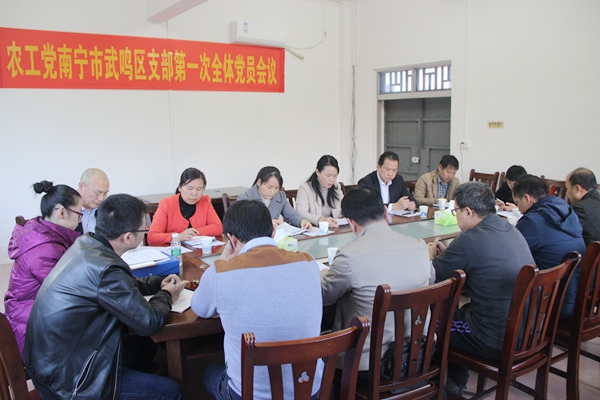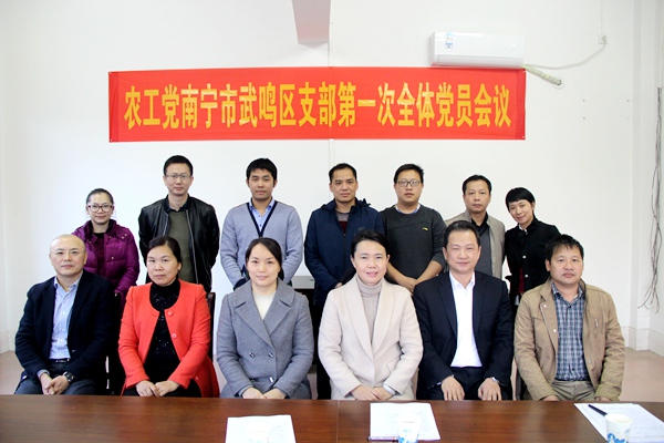 2017年12月25日,农工党南宁市武鸣区支部召开第一次全体党员会议。农工党南宁市委会主委黄玉燕、副主委金轮出席会议,中共武鸣区委常委、统战部部长罗英环应邀到会指导,民盟武鸣区总支主委尹烨应邀到会祝贺。