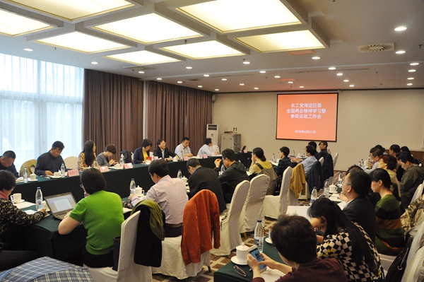 2018年4月21日,农工党北京市海淀区委会召开全国两会精神学习暨参政议政工作会,区委会主委徐凤芹,副主委段新芳、吴敏华、曹卫东、胡敏健、张盼月出席会议。