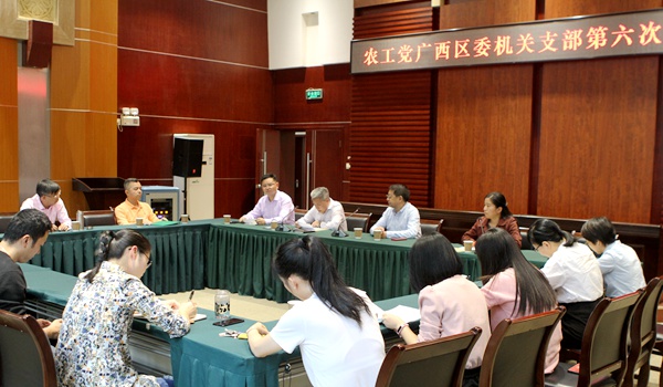 2019年11月9日下午,农工党广西区委会机关第六次党员大会在区委会机关召开。区委会主委蒋和生出席会议并讲话。区委会专职副主委何玉庭、秘书长庞文斌参加会议。