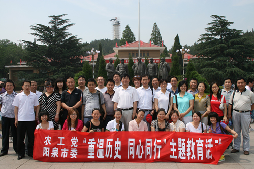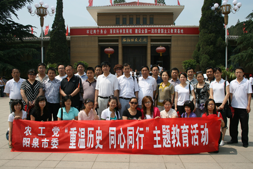 为纪念中国共产党成立90周年,大力实施“同心”品牌工程,6月19日,农工党阳泉市委组织市委委员、各基层支部负责人及部分党员到西柏坡革命圣地参观学习,开展“重温历史,同心同行”主题教育活动。缅怀先烈风范,重温革命历史,吸取精神力量。