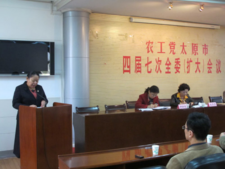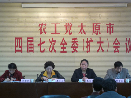 10月12日下午,农工民主党太原市四届七次全委(扩大)会议召开,就中共十七届四中全会精神和深入贯彻科学发展观进行了深入学习。会议由市委驻会副主委赵晋春主持,市政协副主席、农工民主党太原市委主委王爱萍,市委统战部副部长王莎莎参加了会议。