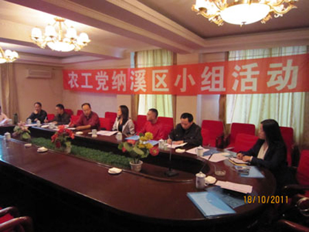 10月18日下午,农工党泸州市纳溪区小组在纳溪宾馆开展组织活动,市委副主委唐敏到会指导,中共区委统战部副部长刘运钱、原副部长仲杰出席了会议。