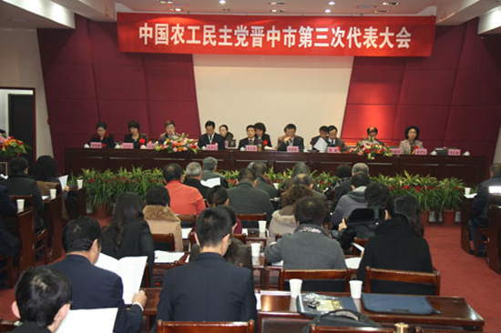 11月28日上午,中国农工民主党晋中市第三次代表大会在榆次隆重召开。会议学习贯彻中共十七大、十七届六中全会精神和中共中央5号文件精神,学习贯彻中共山西省第十次代表大会和中共晋中市第三次代表大会精神,听取和审议了农工党晋中市第二届委员会关于《同心同行,共谋发展,为建设全省四化率先发展区献计出力》的工作报告,选举产生了农工党晋中市第三届委员会,审议并通过了农工党晋中市第三次代表大会政治决议。