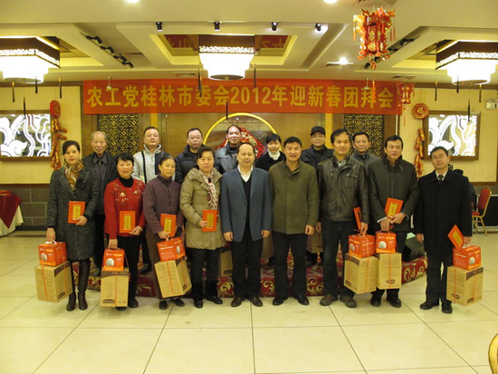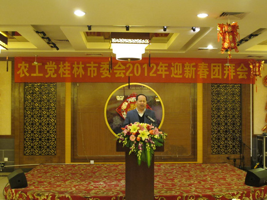 1月15日,农工党桂林市委会2012年迎新春年会在木龙湖景区伏龙轩隆重举行。中共桂林市委统战部阳行志副部长等领导出席了团拜会。